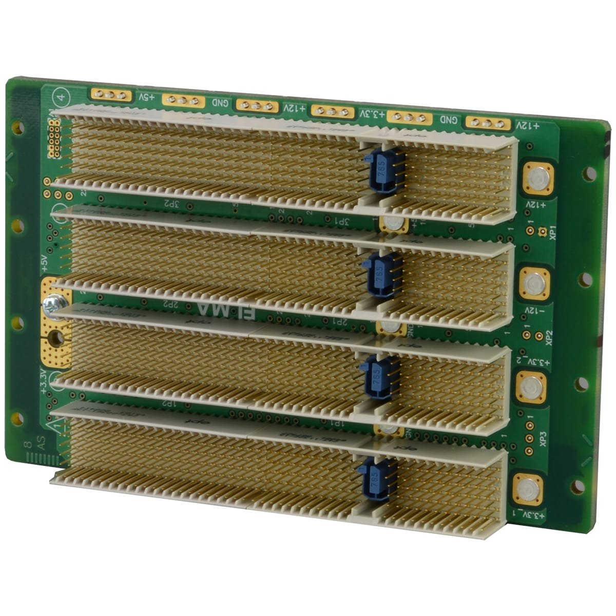 3 HE CompactPCI Backplane 5 Slots, PICMG 2.0 R3.0, Systemslot auf der linken Seite der Backplane, unterstützt volle Hot-swap-Fähigkeit gemäß PICMG 2.1 R2.0, Clock-Frequenz 33 MHz, V(I/O) +5V, Busbreite 32-bit, Stromeingangsverbindung über Power-Bolzen
