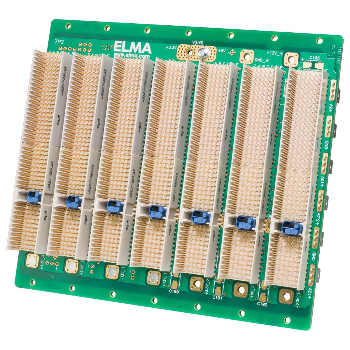 3 HE CompactPCI Backplane 7 Slots, PICMG 2.0 R3.0, Systemslot auf der rechten Seite der Backplane, unterstützt volle Hot-swap-Fähigkeit gemäß PICMG 2.1 R2.0, Clock-Frequenz 33 MHz, V(I/O) +5V, Busbreite 64-bit, Stromeingangsverbindung über Power-Bolzen