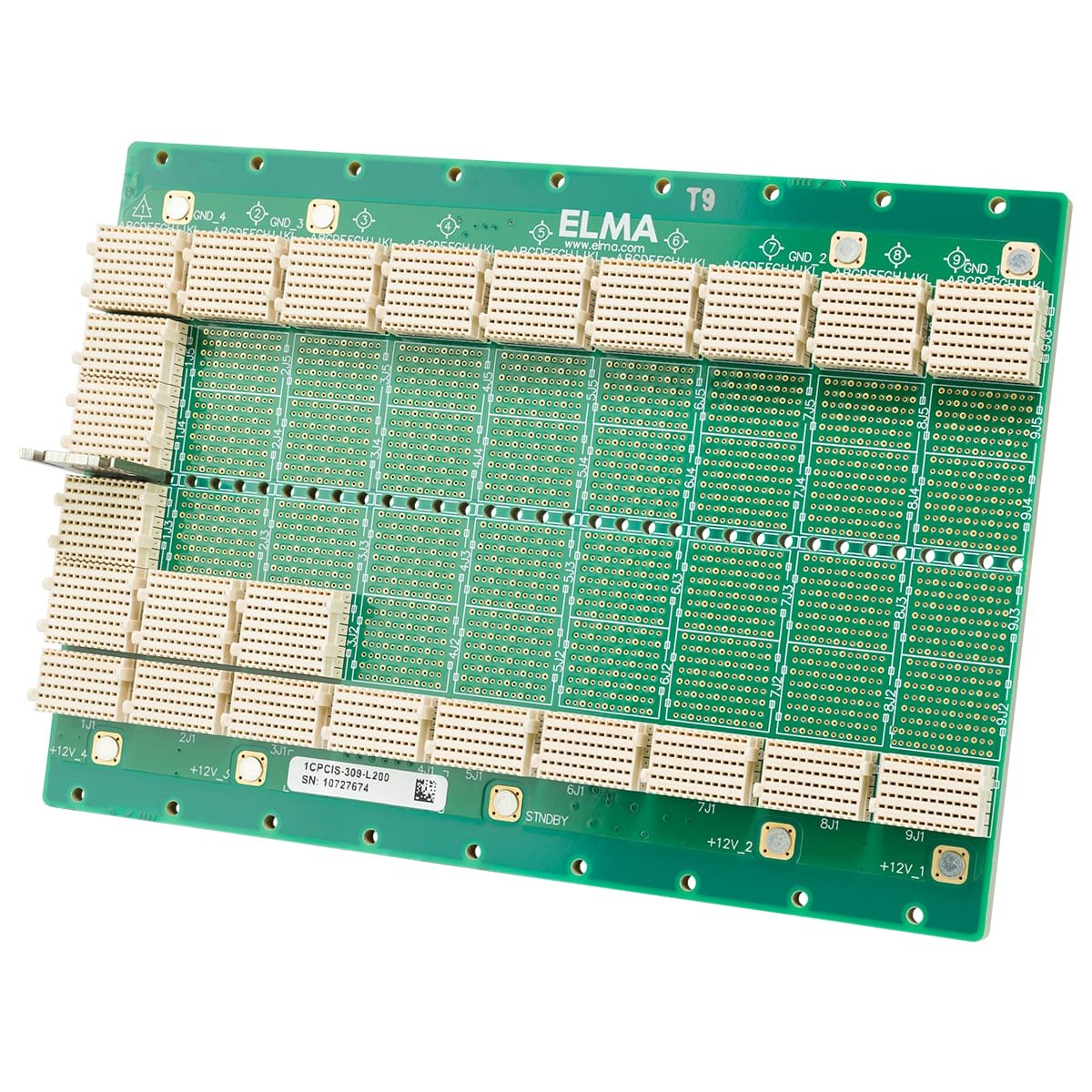 3U CompactPCI Serial Backplane mit 9 CompactPCI S.0 Slots, Systemslot links, ohne Rear-I/Os : 1x CompactPCI S.0 CPU Slot, 8x CompactPCI S.0 Peripherieslots, ohne Konnektoren für Rear-Transition-Modules (RTMs), Ethernet full mesh