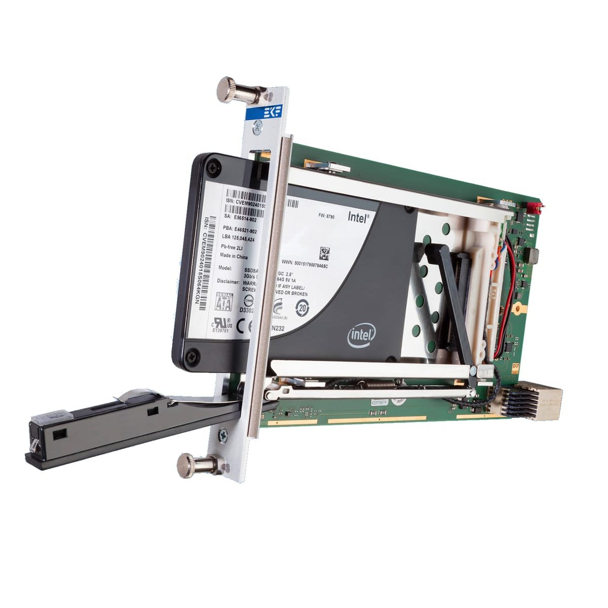 The SD8-STEEL is a peripheral slot card for CompactPCI® Serial systems. It includes a shuttle for 1.8 or 2.5” SSD or HDD drives. Signal integrity is optimized with 6Gbps SATA drivers. A push button ejection of the drive enables easy swap removal.