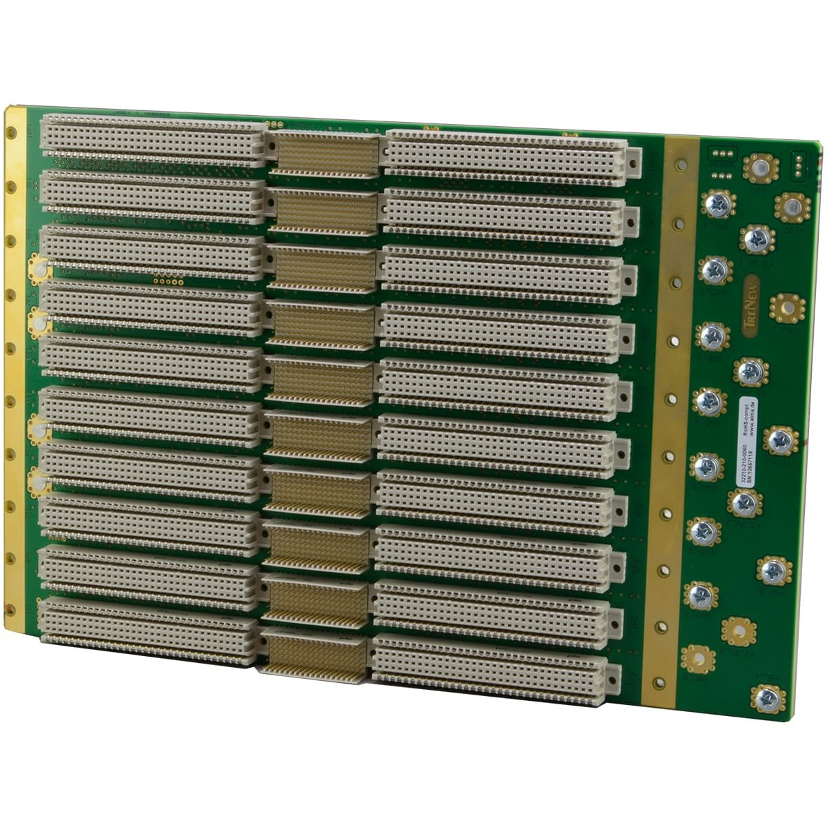 7 HE VME64x Backplane 21 Slots, VITA, passive interne Terminierung, Daisychain automatisch aktiviert, Stromzufuhr über Stromschienen mit M8/M6/M4-Verbindern, I/O-Pins 16 mm vergoldet, Übergaberahmen (1P1/nP2/nP0) mit optionaler Verriegelung