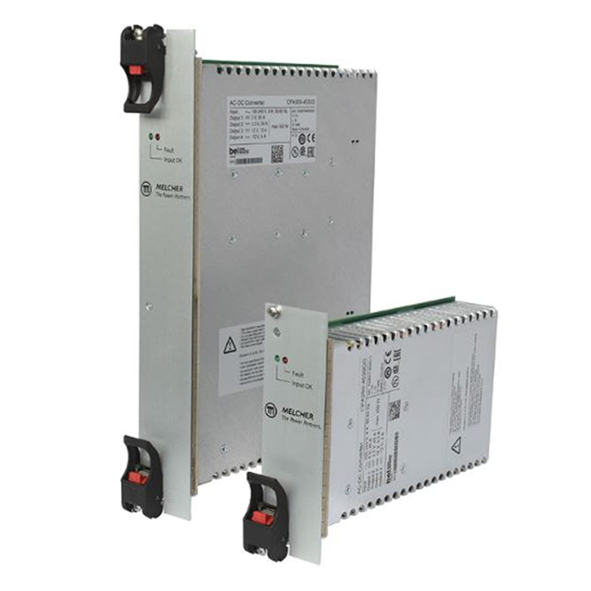 DC/DC Konverter mit 250 W von Bel Leistung Solutions | Eingangsbereiche 36 - 75 VDC | Ausgangs 5 / 3.3 / +/-12 V | arbeitet bei Temperaturen von -40 bis +50 °C | kann im Betrieb gewechselt werden | Frontplatte ohne Logo
